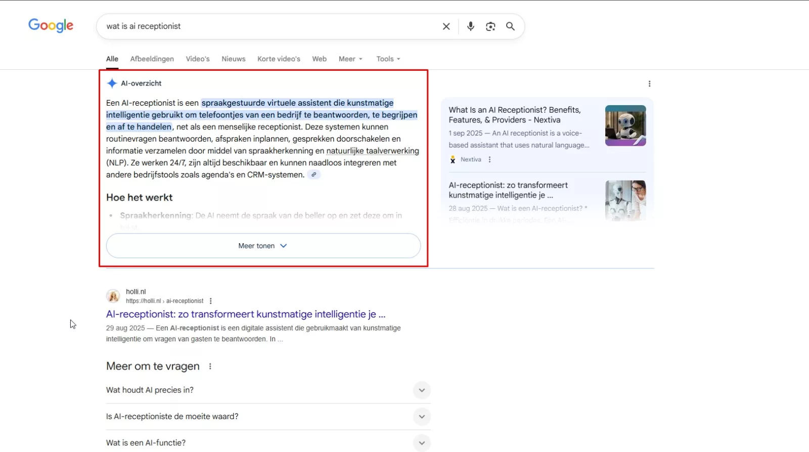 - Extra spotlight via AI Overview: als jouw bedrijf wordt genoemd, profiteer je van gratis zichtbaarheid.